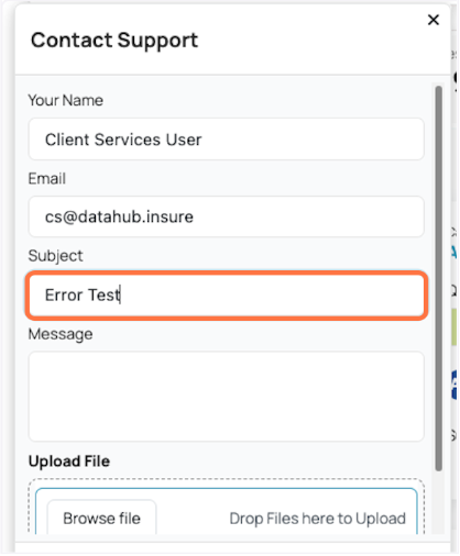 - In the Subject field, type a short title that says a preview of what the error is about. For this instance, we wrote “Error Test”.