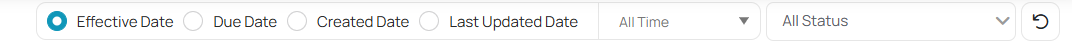 Choose a filter type (Effective Date, Due Date, Created Date, Last Updated Date).