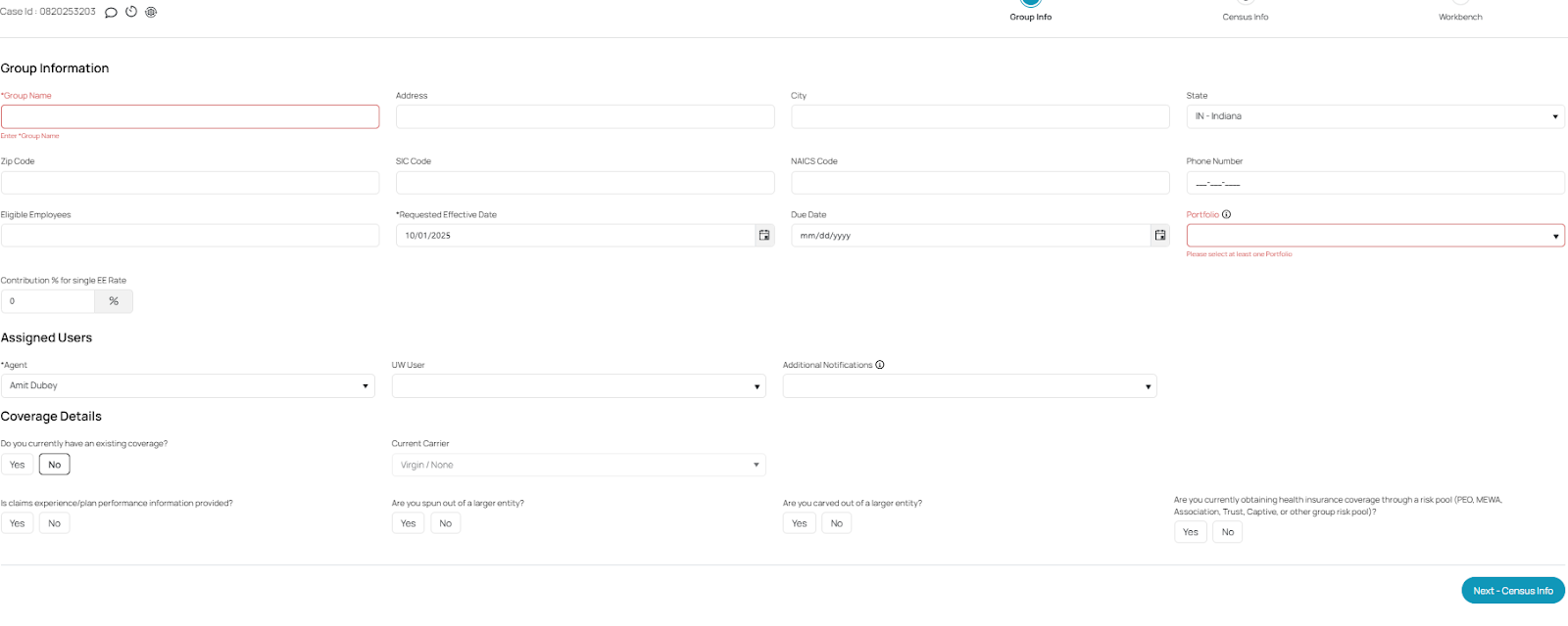 On the Group Information page, this will auto populate if you used Smart Extractor, if not, manually provide all relevant information on each field.