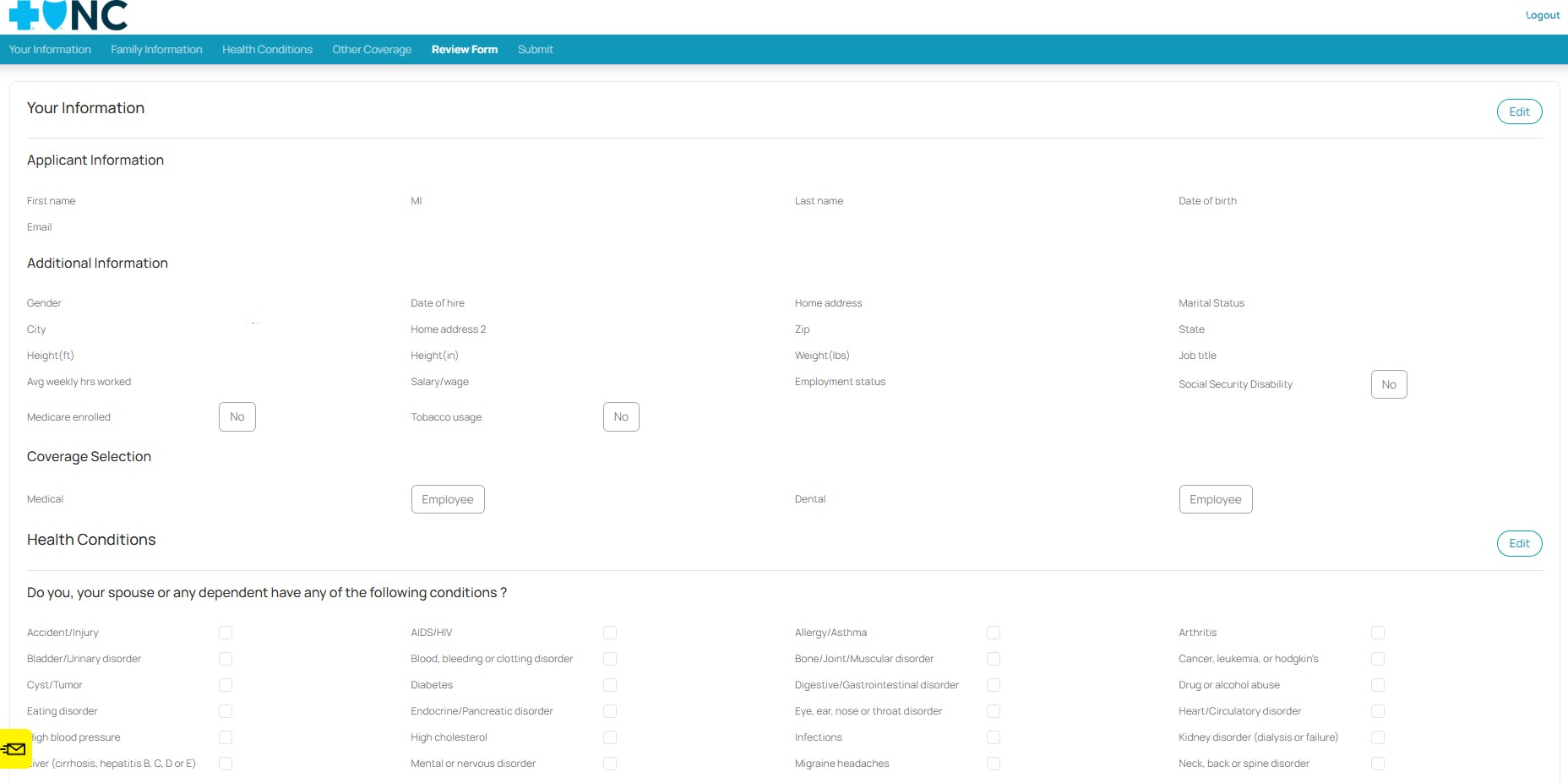 Update details such as name, date of birth, email, coverage type, COBRA status, or job title.