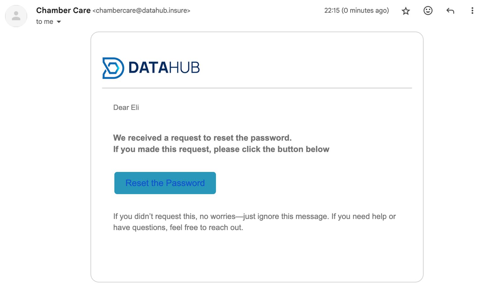 You will receive an email from DataHub. Click the [Reset the Password] button within the email.