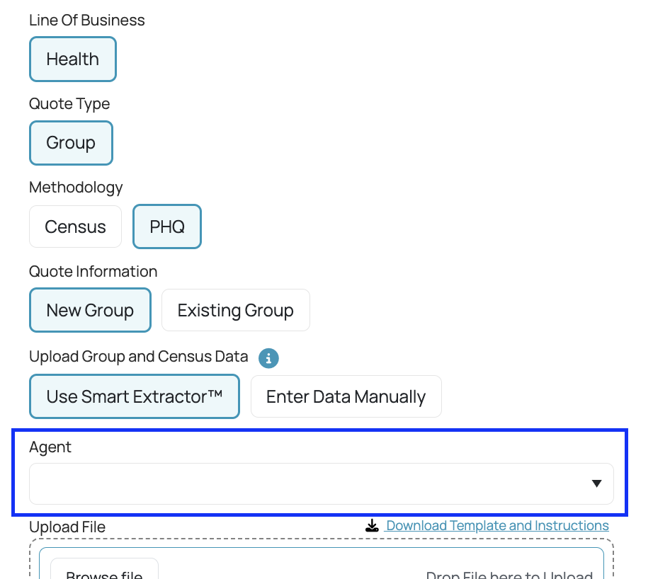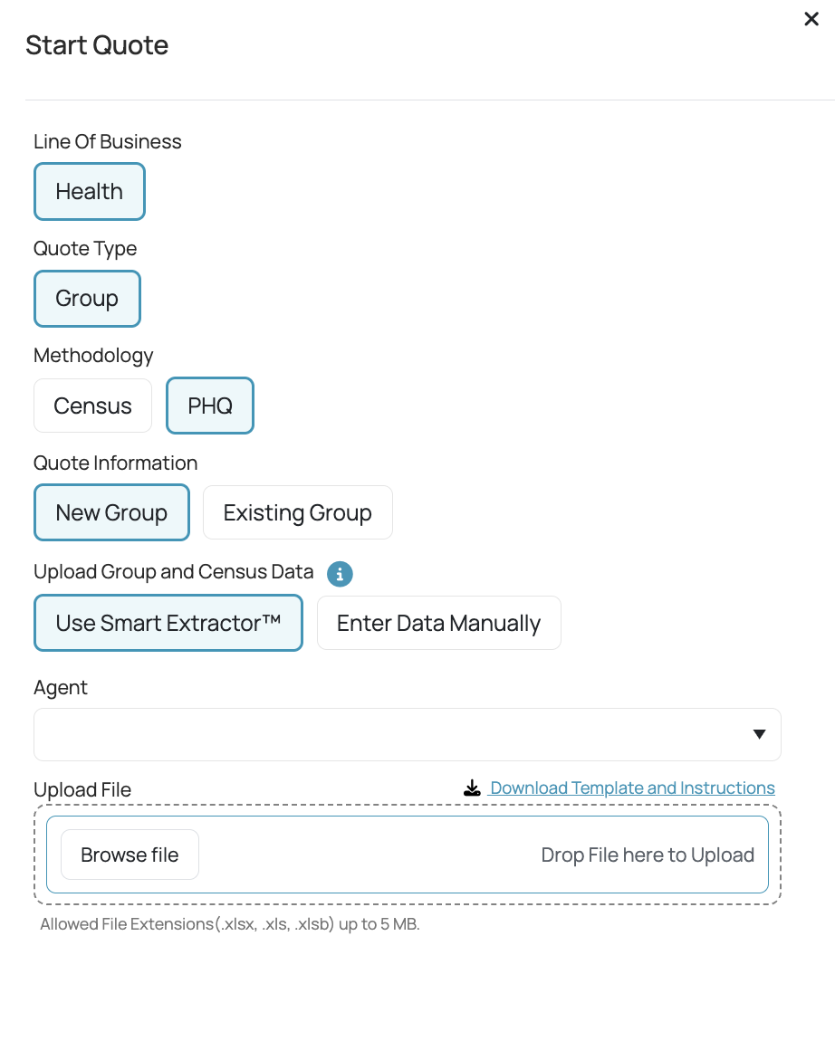 In uploading your group or census, use Smart Extractor™ to import details from your file, or select Enter Data Manually.