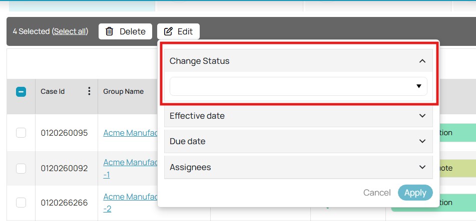 Click Apply to save your updates. The selected groups will immediately reflect the new status.
